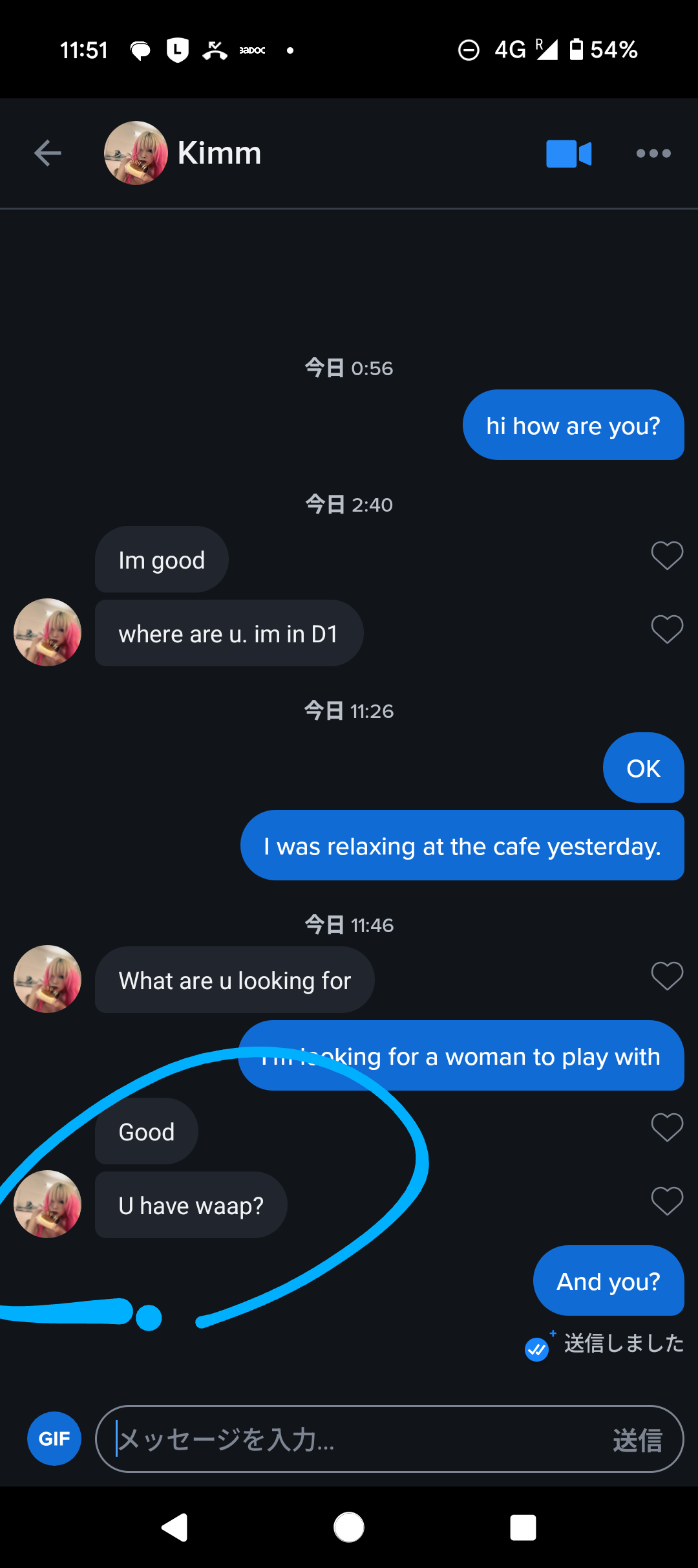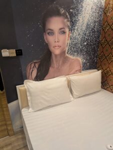 すかさず恥ずかしがるブロンドウーマン「え〜ホテル?